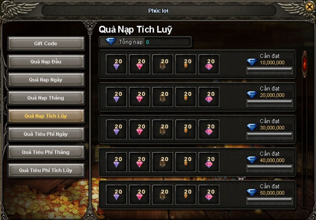 • Tích lũy nạp vĩnh viễn, đạt đủ mốc là nhận quà ngay!