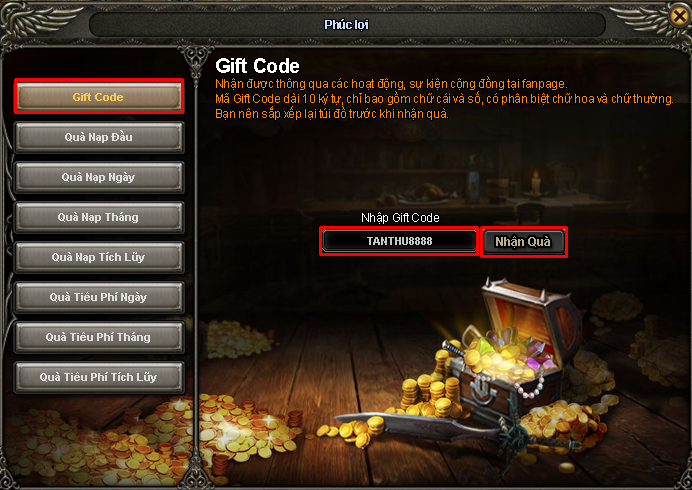 4. Nhập mã GiftCode vào ô yêu cầu