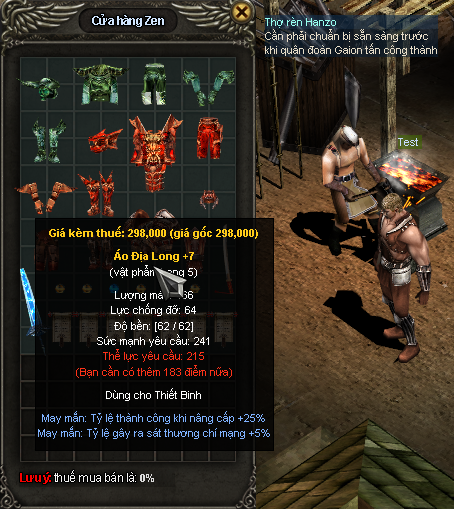 - 🛡 Chiến Binh / Thiết Binh → Thợ rèn Hanzo (Lorencia 117,142)