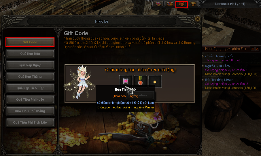 Tiếp theo, đừng quên nhập ngay bộ GiftCode tân thủ để gia tăng lợi thế: