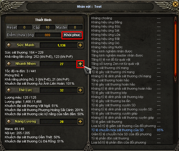 Hãy cân nhắc cách cộng điểm phù hợp, bởi đây chính là yếu tố quyết định sức mạnh của nhân vật. Nếu cộng sai bạn có thể Khôi Phục và cộng lại